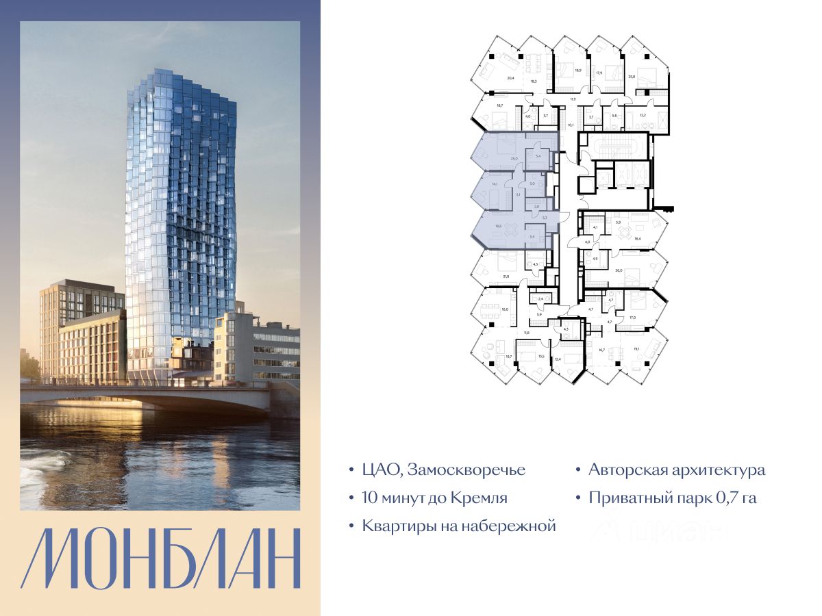 "Монблан" - элитный жилой комплекс в сердце Замоскворечья, в уникальном месте Москвы. Проект расположен в хорошо знакомом месте, напротив Дома музыки, прямо у воды.