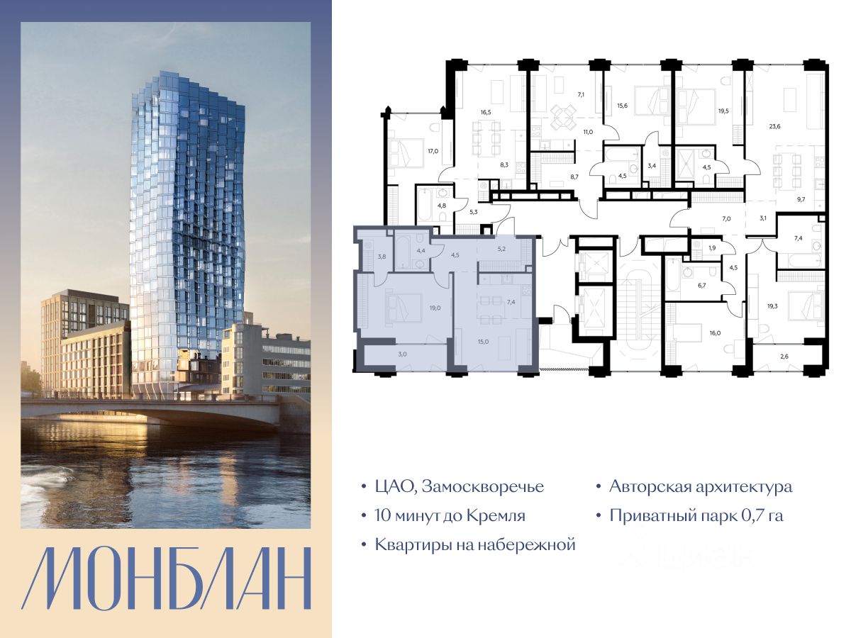 "Монблан" - элитный жилой комплекс в сердце Замоскворечья, в уникальном месте Москвы. Проект расположен в хорошо знакомом месте, напротив Дома музыки, прямо у воды.
