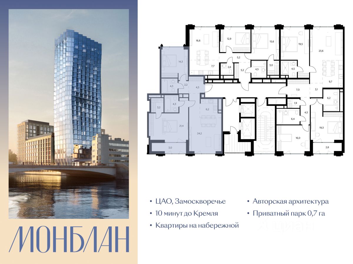 "Монблан" - элитный жилой комплекс в сердце Замоскворечья, в уникальном месте Москвы. Проект расположен в хорошо знакомом месте, напротив Дома музыки, прямо у воды.