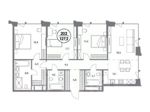 В элитном жилом комплексе "Монблан" на Шлюзовой набережной в Замоскворечье напрямую от девелопера ГК "Галс-Девелопмент" представлена 3-комнатная квартира квартира на 7 этаже общей площадью 127.30 м².