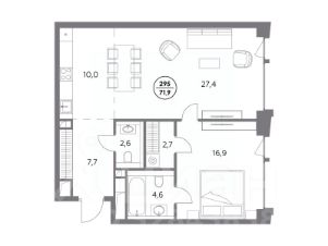 В элитном жилом комплексе "Монблан" на Шлюзовой набережной в Замоскворечье напрямую от девелопера ГК "Галс-Девелопмент" представлена 1-комнатная квартира квартира на 6 этаже общей площадью 71.90 м².