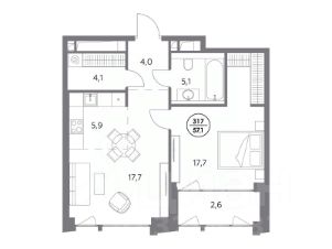 В элитном жилом комплексе "Монблан" на Шлюзовой набережной в Замоскворечье напрямую от девелопера ГК "Галс-Девелопмент" представлена 1-комнатная квартира квартира на 9 этаже общей площадью 57.10 м².