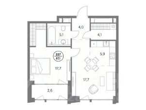 В элитном жилом комплексе "Монблан" на Шлюзовой набережной в Замоскворечье напрямую от девелопера ГК "Галс-Девелопмент" представлена 1-комнатная квартира квартира на 12 этаже общей площадью 57.10 м².
