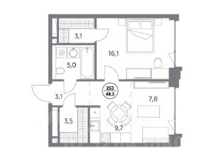 В элитном жилом комплексе "Монблан" на Шлюзовой набережной в Замоскворечье напрямую от девелопера ГК "Галс-Девелопмент" представлена 1-комнатная квартира квартира на 6 этаже общей площадью 48.30 м².
