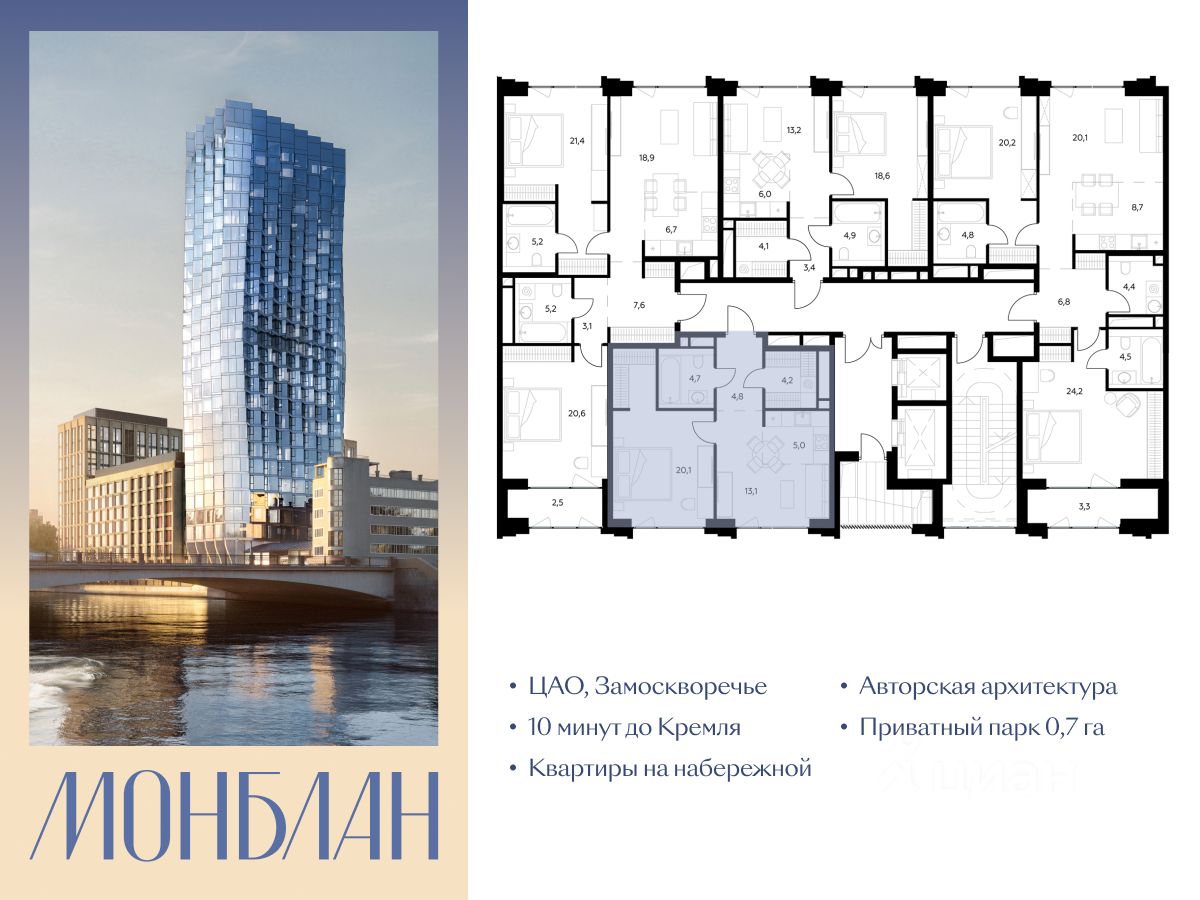 "Монблан" - элитный жилой комплекс в сердце Замоскворечья, в уникальном месте Москвы. Проект расположен в хорошо знакомом месте, напротив Дома музыки, прямо у воды.