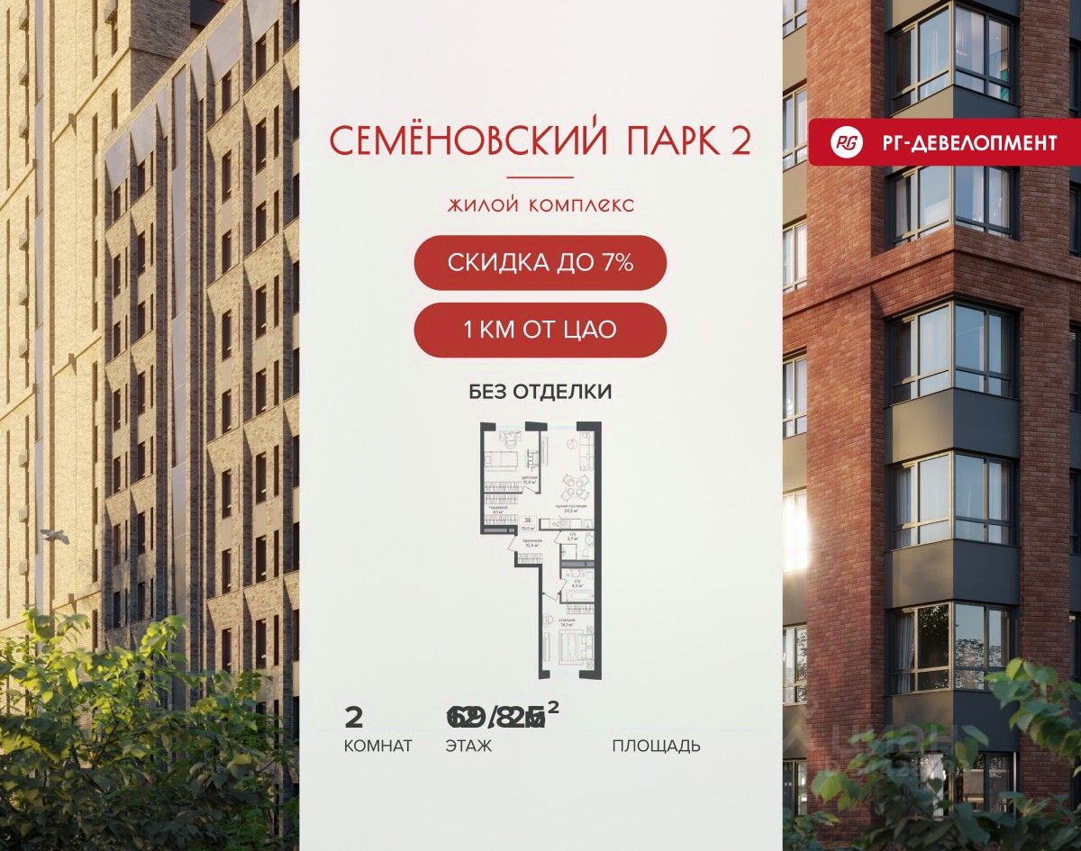 Продается 2-к квартира 69,8 кв.м. в ЖК "Семеновский парк 2" на 12-м этаже 25 этажного дома.