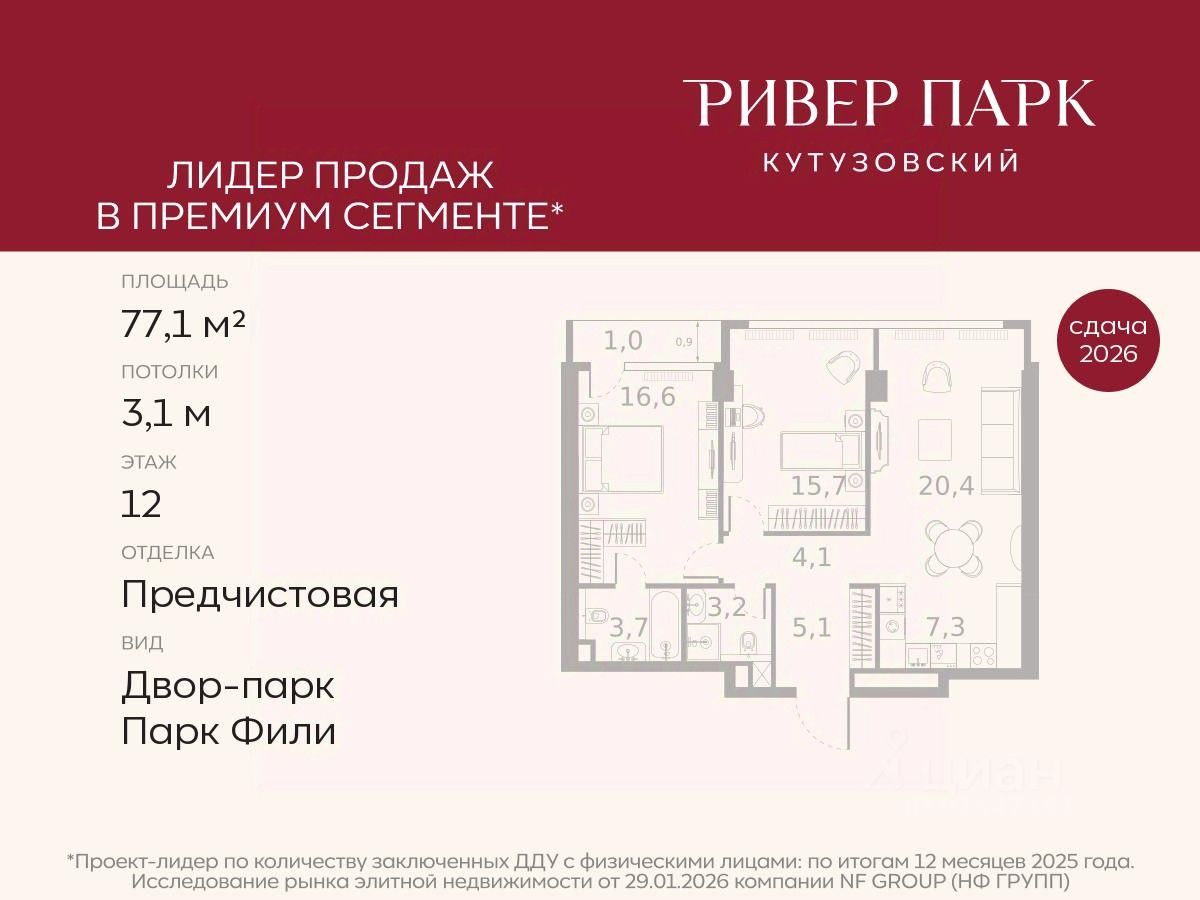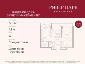 Продается 2-к квартира площадью 77.1 кв.м. на 12-м этаже в жилом комплексе премиум-класса Ривер Парк Кутузовский в Башне Изумруд