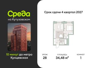 Продаётся однокомнатная квартира общей площадью 34.48 кв. м. с отделкой на выбор: черновая, White Box. Квартира на 28 этаже корпуса 5 в жилом комплексе бизнес-класса "Среда на Кутузовском". До метро "Кунцевская" 10 минут пешком.