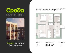 Продаётся однокомнатная квартира общей площадью 38.20 кв. м. с отделкой на выбор: черновая, White Box. Квартира на 4 этаже корпуса 5.5 в жилом комплексе бизнес-класса "Среда на Лобачевского". До метро "Аминьевская" 7 минут пешком.