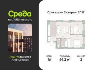 Продаётся двухкомнатная квартира общей площадью 54.20 кв. м. с отделкой на выбор: черновая, White Box. Квартира на 16 этаже корпуса 5.4 в жилом комплексе бизнес-класса "Среда на Лобачевского". До метро "Аминьевская" 7 минут пешком.