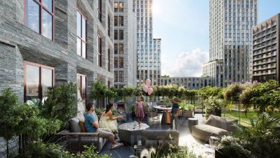 "Среда на Лобачевского" - новый квартал в парадном стиле старой Москвы. Благодаря разноэтажной застройке во дворе комплекса будет много света и воздуха, без ощущения замкнутого пространства. Во дворе лаунж-зоны для медитации и работы, площадки для игр и кинопоказов, а на первых этажах - кофейни и магазины.