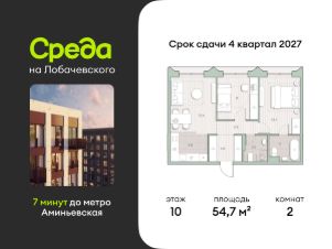 Продаётся двухкомнатная квартира общей площадью 54.70 кв. м. с отделкой на выбор: черновая, White Box. Квартира на 10 этаже корпуса 5.7 в жилом комплексе бизнес-класса "Среда на Лобачевского". До метро "Аминьевская" 7 минут пешком.