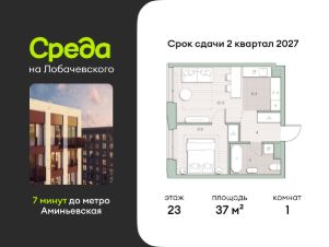 Продаётся однокомнатная квартира общей площадью 37.00 кв. м. с отделкой на выбор: черновая, White Box. Квартира на 23 этаже корпуса 5.4 в жилом комплексе бизнес-класса "Среда на Лобачевского". До метро "Аминьевская" 7 минут пешком.