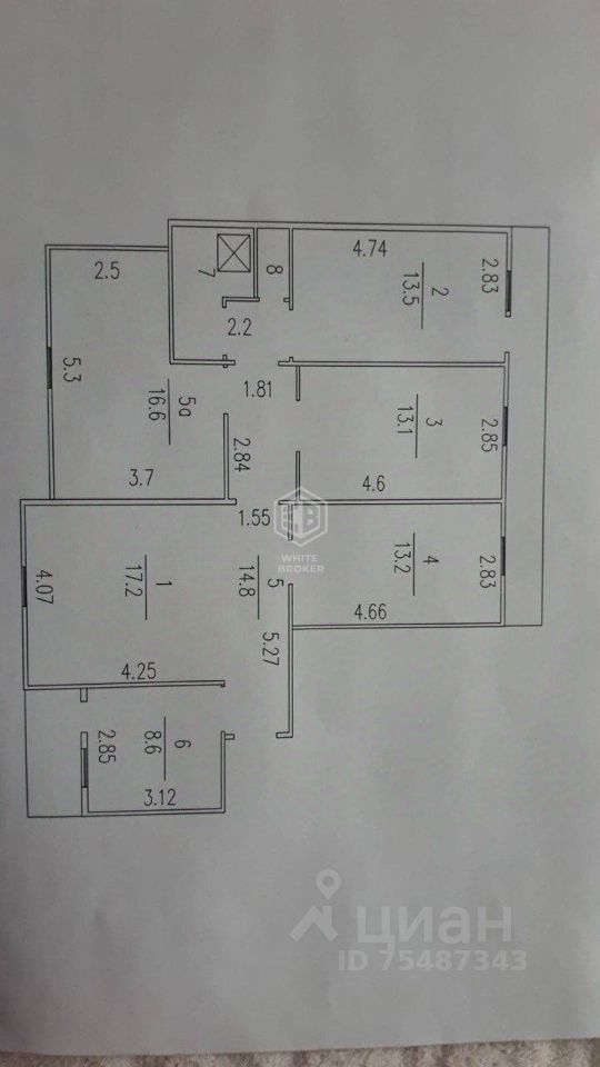 -комнаты 16.6+13.1+13.2+17.2+8.6 кв.м
