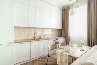 Очень уютный и грамотно спланированная квартира включает в себя просторную прихожую, роскошную кухню с гостиной и изолированную спальную.