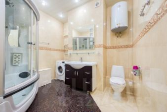В гостевом санузле также расположено джакузи, но в виде встроенной душевой кабины на 2 персоны, с паровой баней, массажными форсунками и подсветкой.