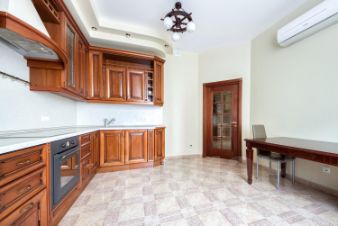 Двери и мебель в спальне и на кухне (Италия) выполнены из настоящего дерева.