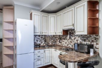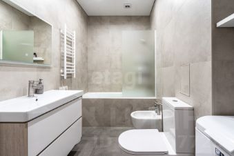 Объект находится в отличном состоянии после качественного ремонта: стены окрашены, полы застелены немецким ламинатом, в санузле уложен керамогранит. Вся мебель, включая кухню "Мария" и диван Eichholtz, а также полный комплект встроенной и отдельно стоящей бытовой техники премиальных брендов (Bosch, Korting, Electrolux) остаются новому владельцу. Квартира оснащена системой кондиционирования и современным освещением.
