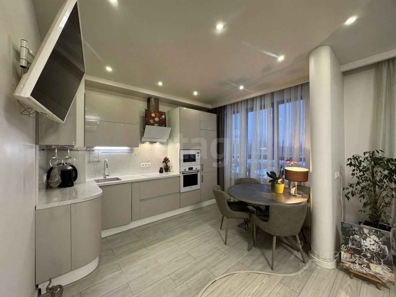 Просторная кухня 16 кв.м., место для семейных ужинов и кулинарных экспериментов, меблирована со встроенной техникой: Варочная панель, духовка ,микроволновка, посудомойка Bosch, вытяжка. Жилая площадь 37 кв.м., что предоставляет достаточно пространства для комфортного проживания. Спальня изолирована, оборудована вместительной гардеробной системой хранения, с окнами, выходящими в тихий двор.