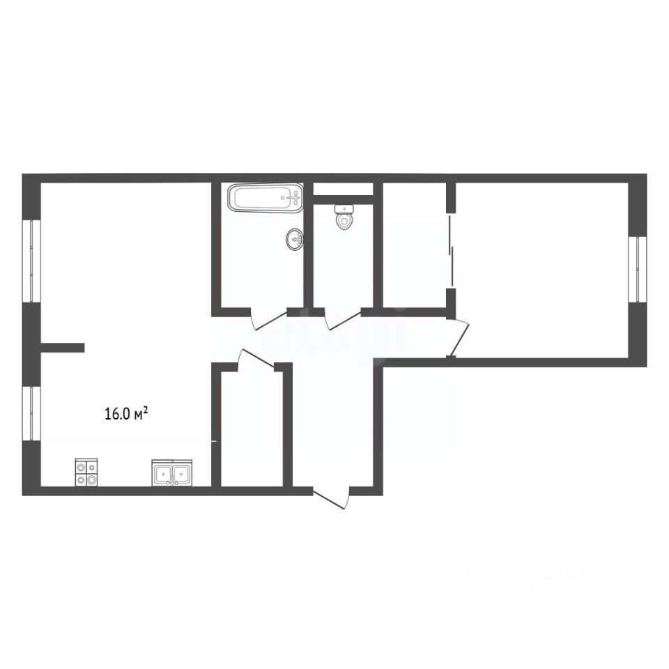 Площадь кухни 16м².