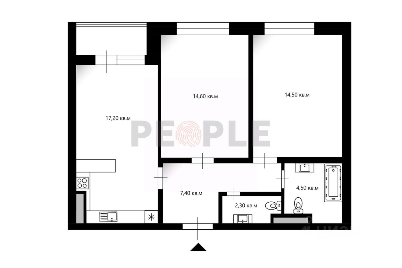 • Просторная кухня-гостиная 17,2 м² с выходом на лоджию;