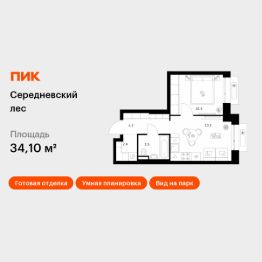 Продаётся 1-комн. квартира площадью 34,1 кв.м на 13 этаже 16 этажного дома (Корпус 2.1.5, Секция 5) проекта ПИК Середневский лес. Светлый просторный подъезд на уровне земли, функциональная планировка, большие окна, c отделкой.