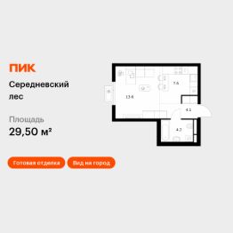 Продаётся квартира-студия площадью 29,5 кв.м на 12 этаже 16 этажного дома (Корпус 2.1.1, Секция 1) проекта ПИК Середневский лес. Светлый просторный подъезд на уровне земли, функциональная планировка, большие окна, c отделкой.