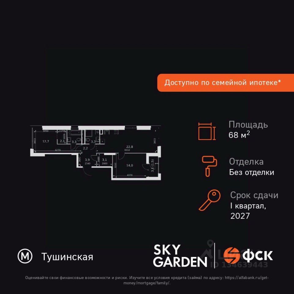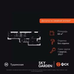 Продаётся 2-к квартира номер 697 общей площадью 68.9 кв.м. на 28-м этаже 44 этажного здания. Без отделки. Цена с учётом скидки.