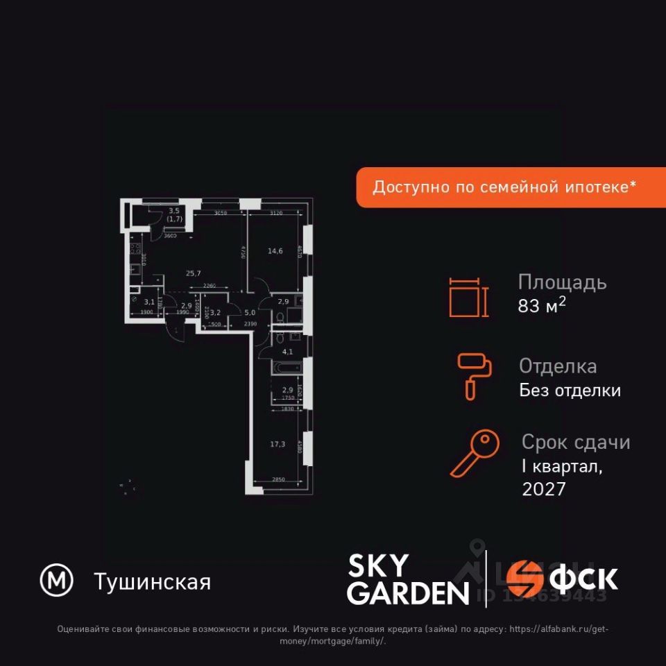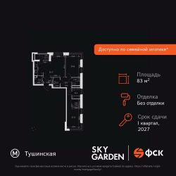 Продаётся 3-к квартира номер 131 общей площадью 83.4 кв.м. на 28-м этаже 44 этажного здания. Без отделки. Цена с учётом скидки.