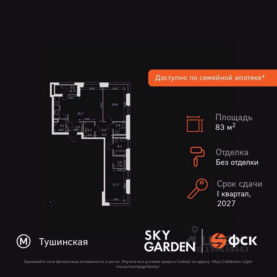 Продаётся 3-к квартира номер 151 общей площадью 83.4 кв.м. на 32-м этаже 44 этажного здания. Без отделки. Цена с учётом скидки.