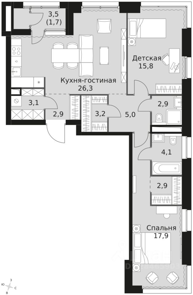 - Мастер-зона с санузлом и гардеробной. Всё для вашего комфорта и удобства, включая личный санузел и гардероб.