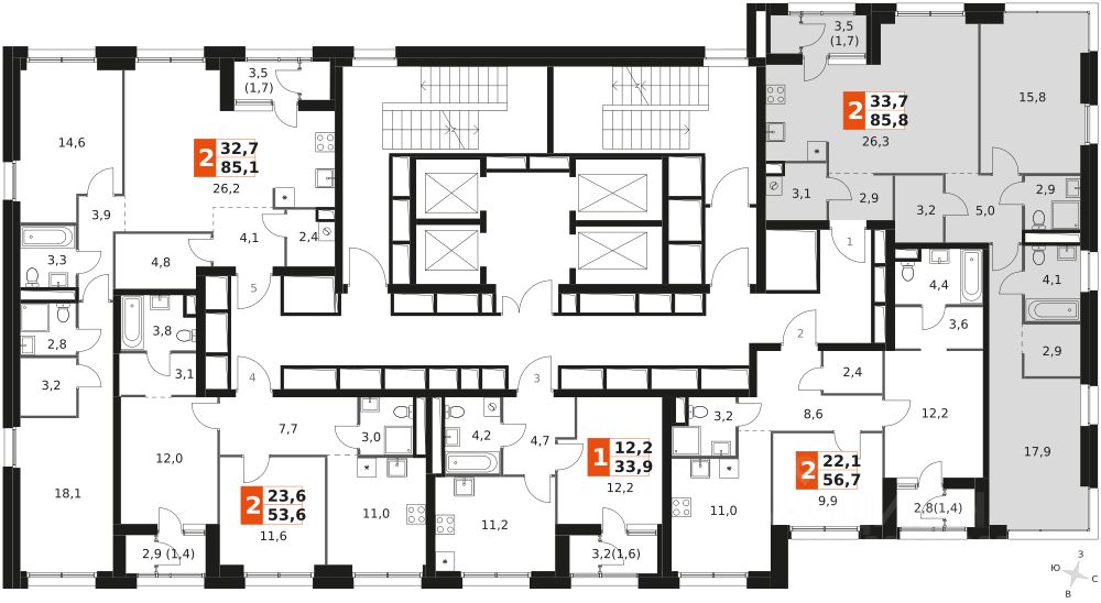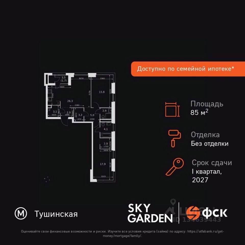Продаётся 3-к квартира номер 211 общей площадью 85.8 кв.м. на 44-м этаже 44 этажного здания. Без отделки. Цена с учётом скидки.