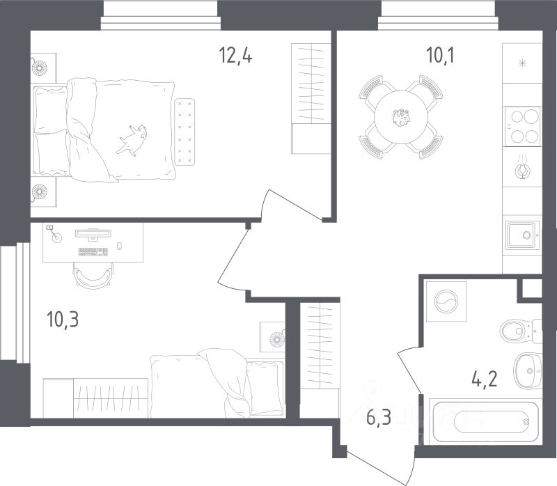 2-комн. квартира, 43,3 м²