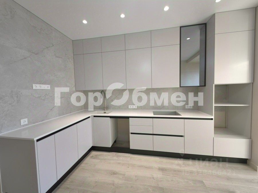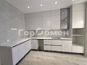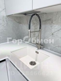 Кухня: эмаль, искусственный камень (столешница), плитка (фартук), камень (мойка). шкафы с доводчиками, предусмотрена подсветка. Панорамное остекленение.