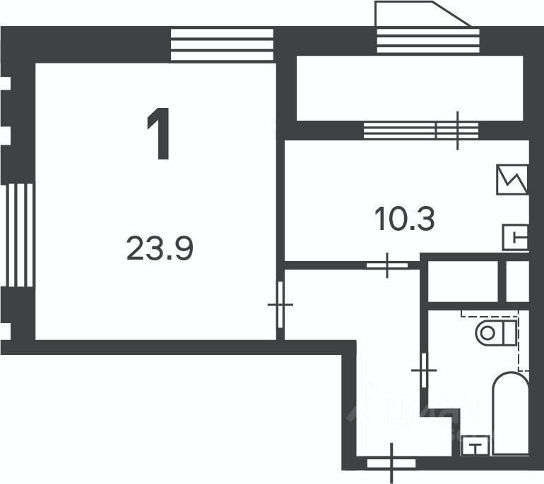 Новая 1-комн. кв-ра, общ. площ. 45,6 кв.м, комната 23,9 кв.м, почти квадратная, светлая, солнечная, кухня 10,3, прямоугольная, в престижном районе Раменки.