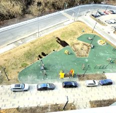 На выходе из подъезда детская площадка.