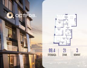 Продаётся трехкомнатная квартира от застройщика: общая площадь 99.40 м², жилая 37.70 м², кухня 28.00 м², 21, жилой квартал "Остров 12", корпус 3 (12.1 квартал) (секция 1). срок сдачи: 4-кв. 2025.