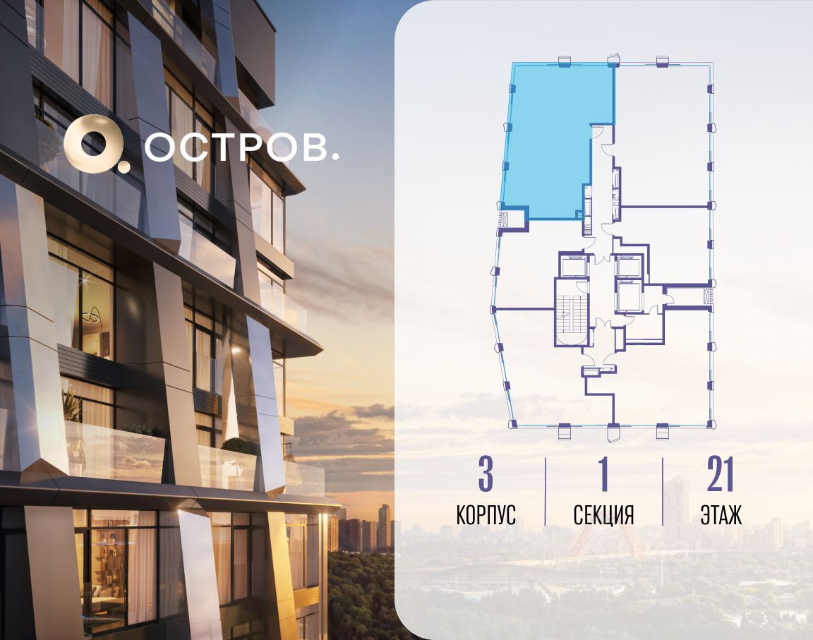 ОСТРОВ.12.1 - часть жилого комплекса на западе Москвы, в 15 минутах езды от центра. Это настоящий заповедник посреди большого города, в окружении реки и 650 га заповедников. Здесь все необходимое находится по соседству: от детского сада до супермаркета, от фитнес-зала до серфинг-центра. На территории созданы все условия для отдыха и общения: клубная инфраструктура в домах и дворы-парки, набережные и променады, маршруты для спортсменов, детей и возрастных жителей. В нескольких минутах ходьбы расположена станция метро "Мнёвники" БКЛ. На автомобиле - 10 минут до Москва-Сити и 15 минут до Садового кольца.