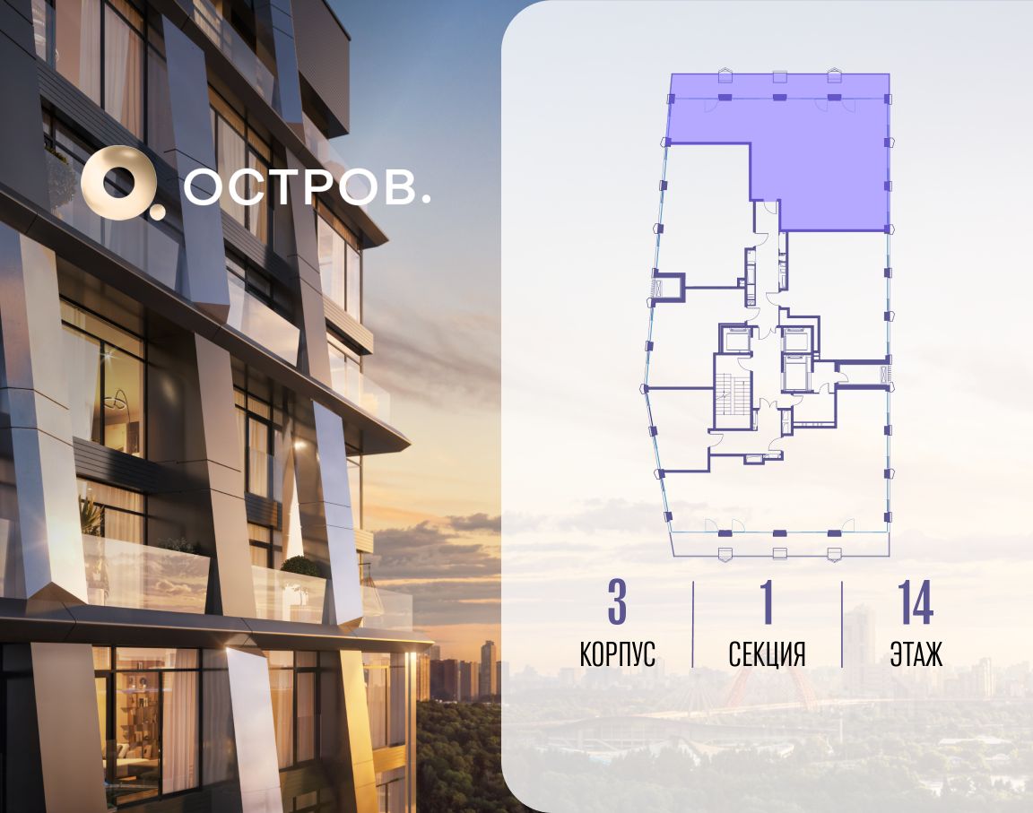 ОСТРОВ.12.1 - часть жилого комплекса на западе Москвы, в 15 минутах езды от центра. Это настоящий заповедник посреди большого города, в окружении реки и 650 га заповедников. Здесь все необходимое находится по соседству: от детского сада до супермаркета, от фитнес-зала до серфинг-центра. На территории созданы все условия для отдыха и общения: клубная инфраструктура в домах и дворы-парки, набережные и променады, маршруты для спортсменов, детей и возрастных жителей. В нескольких минутах ходьбы расположена станция метро "Мнёвники" БКЛ. На автомобиле - 10 минут до Москва-Сити и 15 минут до Садового кольца.