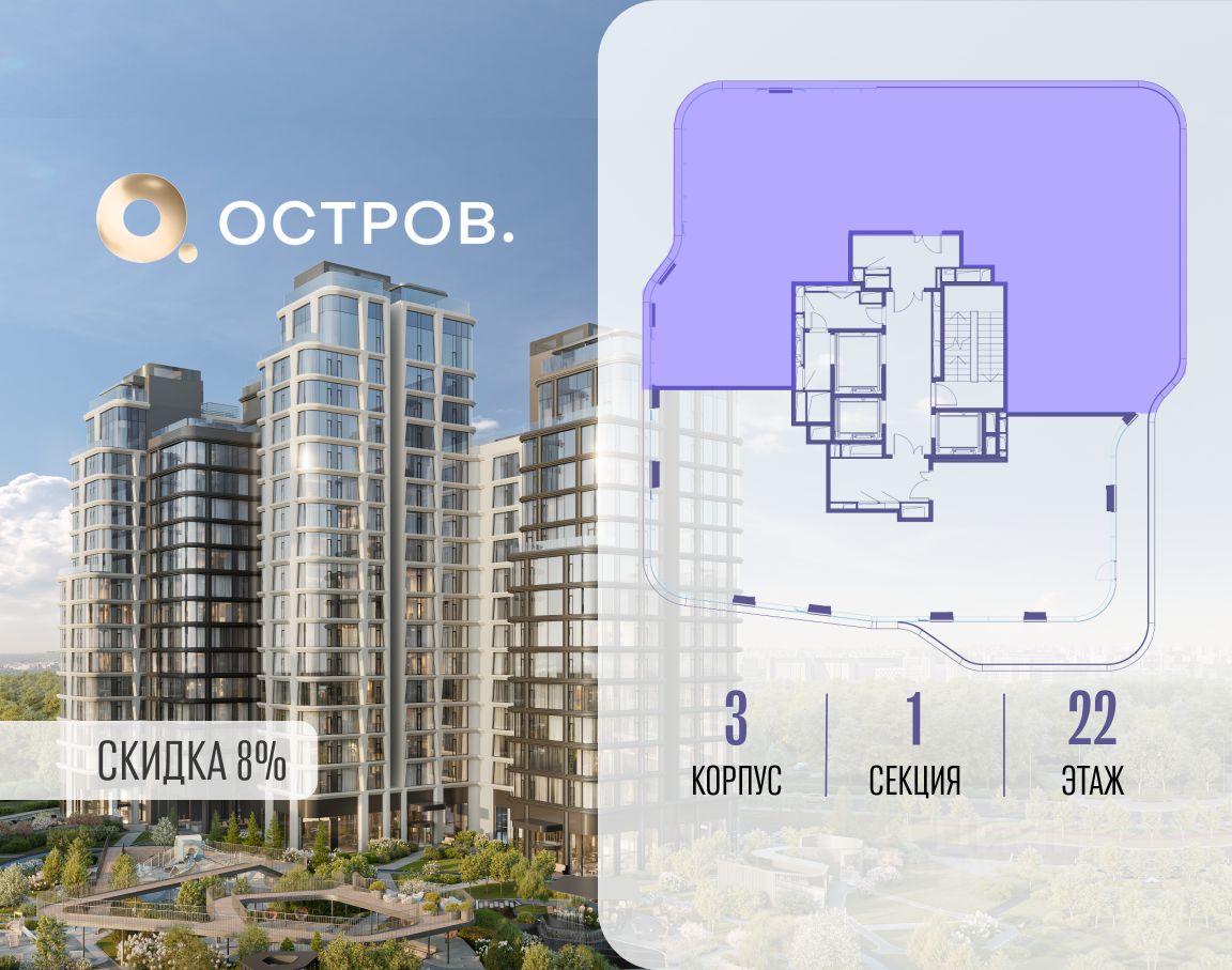 Продаётся квартира от застройщика: общая площадь 233.40 м², жилая 126.90 м², кухня 7.00 м², 22-й этаж, жилой квартал "Остров 12", корпус 3 (секция 1). Срок сдачи: 1 квартал 2029 года.