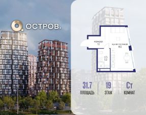 Продаётся квартира от застройщика: общая площадь 31.70 м², жилая 14.30 м², кухня 5.00 м², 19-й этаж, жилой квартал "Остров 14", корпус 6 (секция 1). Срок сдачи: 2 квартал 2029 года.