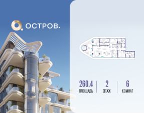 Продаётся квартира от застройщика: общая площадь 260.40 м², жилая 84.00 м², кухня 83.30 м², 2-й этаж, жилой квартал "Остров 10", (секция 1). Срок сдачи: 2 квартал 2026 года.