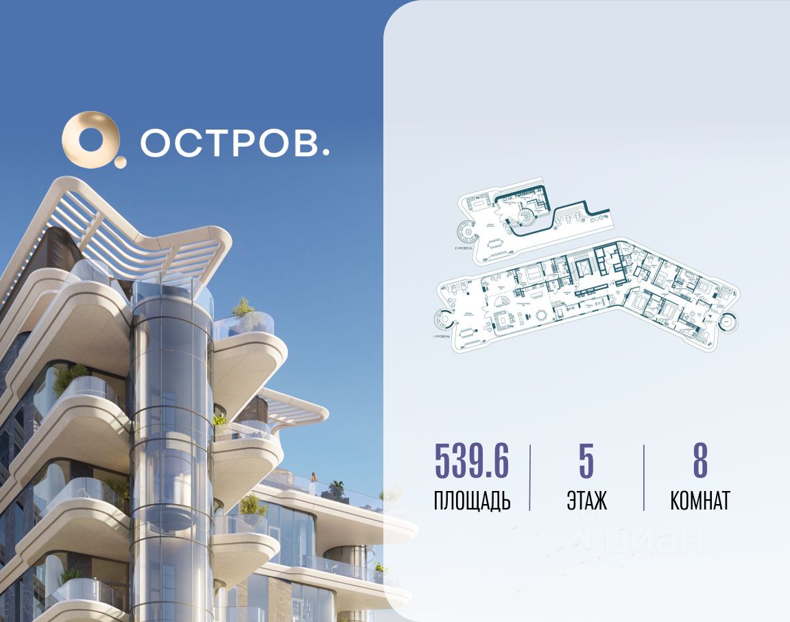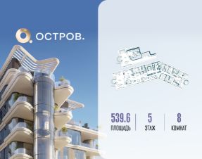 Продаётся квартира от застройщика: общая площадь 539.60 м², жилая 163.80 м², кухня 107.40 м², 5-й этаж, жилой квартал "Остров 10", (секция 1). Срок сдачи: 2 квартал 2026 года.