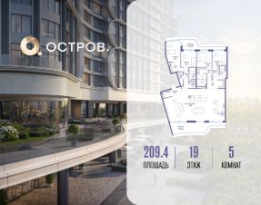 Продаётся многокомнатная квартира от застройщика: общая площадь 209.40 м², жилая 50.80 м², кухня 88.50 м², 19, жилой квартал "Остров 7", корпус 2 (7 квартал) (секция 2). срок сдачи: 4-кв. 2025.