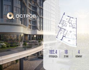 Продаётся четырехкомнатная квартира от застройщика: общая площадь 192.40 м², жилая 55.00 м², кухня 65.10 м², 18, жилой квартал "Остров 7", корпус 3 (7 квартал) (секция 2). срок сдачи: 4-кв. 2025.