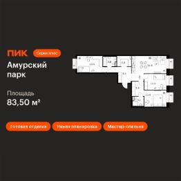 Продаётся 3-комн. квартира площадью 83,5 кв.м на 16 этаже 19 этажного дома (Корпус 4.4, Секция 5) проекта ПИК Амурский парк. Светлый просторный подъезд на уровне земли, функциональная планировка, большие окна, c отделкой.