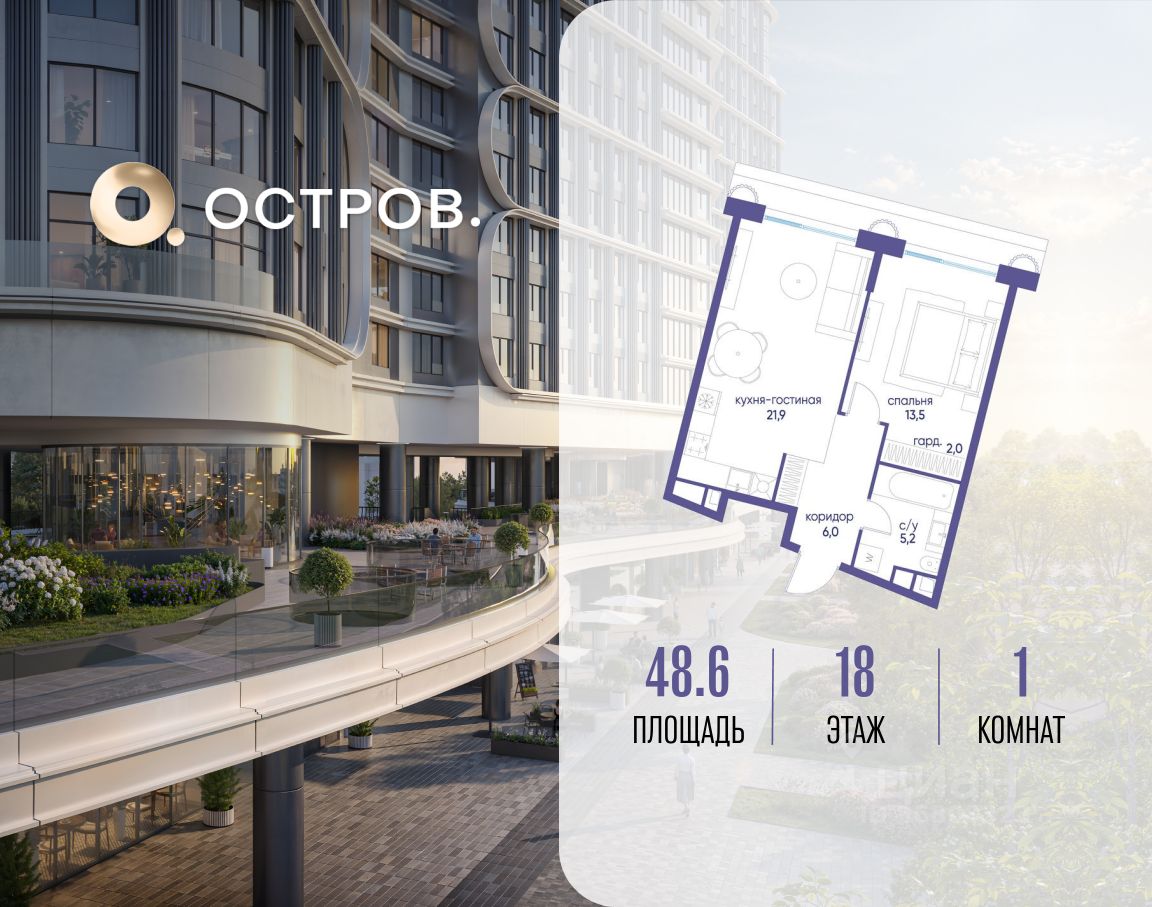 Купите квартиру в доме у прибрежного парка, в квартале ОСТРОВ.7. Это семь корпусов премиум- и бизнес-класса в одном из лучших мест ОСТРОВА - между бульваром и парком, поблизости от реки. Стильные корпуса имеют узнаваемый вид благодаря бионической пластике фасадов, приподнятых над землей. Для жителей предусмотрены детский клуб, фитнес-рум, коворкинг, переговорные, лаунжи. На крышах устроены видовые общественные пространства с зонами для отдыха и спорта. Двор расположен на двух уровнях: нижний ландшафтный парк и верхняя городская терраса.