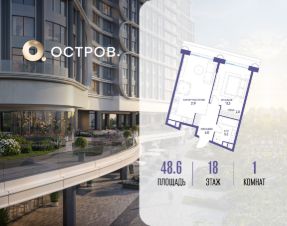 Продаётся однокомнатная квартира от застройщика: общая площадь 48.60 м², жилая 13.50 м², кухня 21.90 м², 18, жилой квартал "Остров 7", корпус 7 (7 квартал) (секция 2). срок сдачи: 4-кв. 2025.