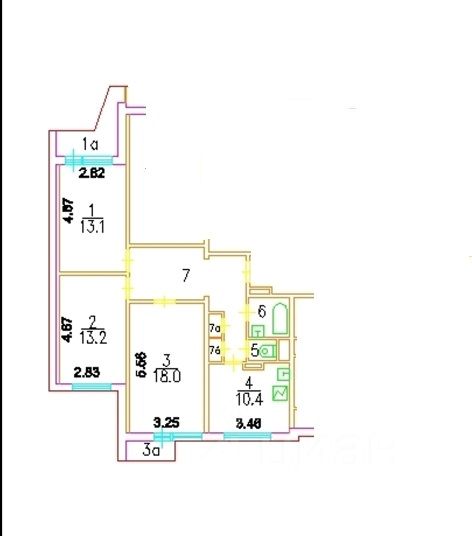 1 лоджия, 1 балкон