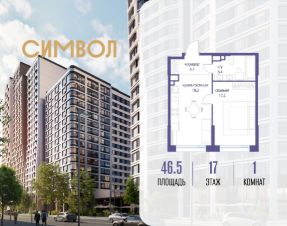 Продается 1-комнатная квартира от застройщика: общая площадь 46.50 м², жилая 17.20 м², кухня 18.20 м², 17-й этаж, жилой квартал "Гордость", корпус 36 (секция 4). Срок сдачи: 2 квартал 2029 года.